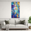 Este conjunto de 2 lienzos juveniles inspirados en vitrales abstractos se verá espectacular en tu sala de estar Colócalo sobre el sofá principal para crear un punto focal llamativo Combina los colores del cuadro con cojines en tonos morados, plateados y turquesas para lograr una armonía perfecta en tu espacio ¡Sorprende a tus invitados con esta pieza única!