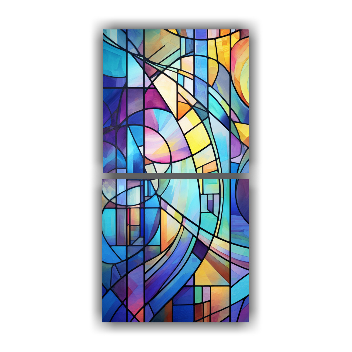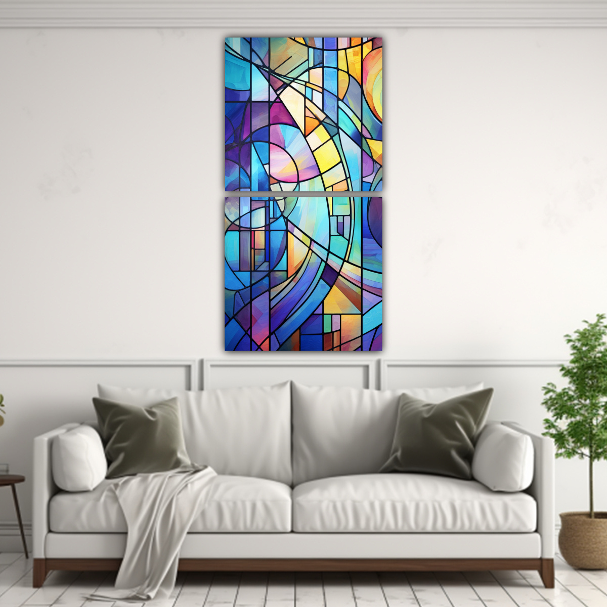 Conjunto De 2 Lienzos De Tela Juveniles Inspirados En Vitrales Abstractos