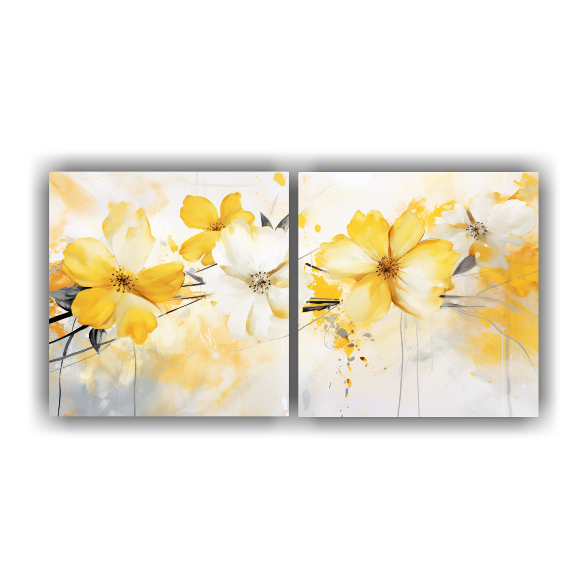 Decora tu salón con estilo y elegancia con este conjunto de 2 lienzos inspiradores en tonos amarillo y blanco Descubre diseños exclusivos, entrega rápida y gratuita en Santiago