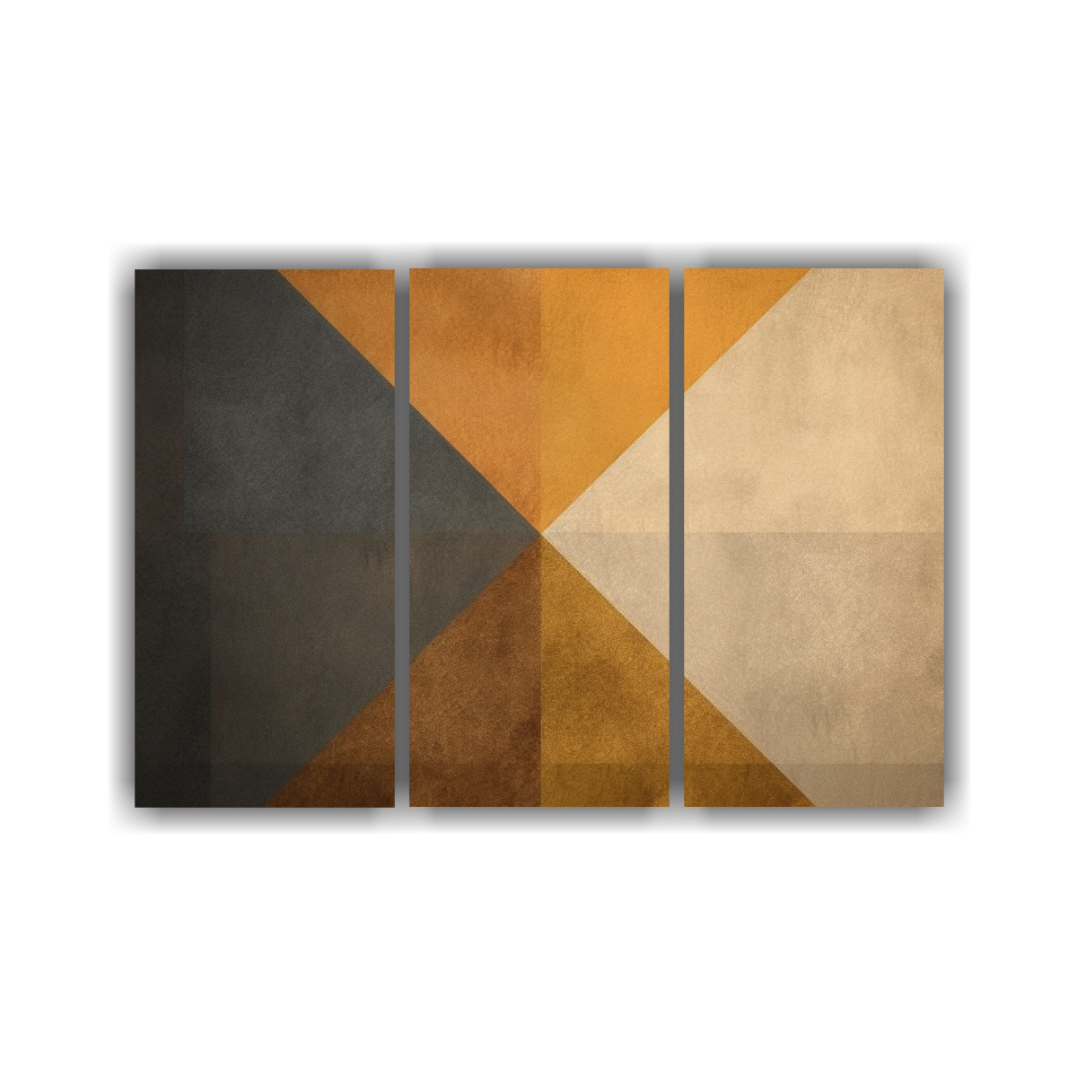 Conjunto De 3 Composiciones Abstractas En Fondo Geométrico Dorado Y Beige