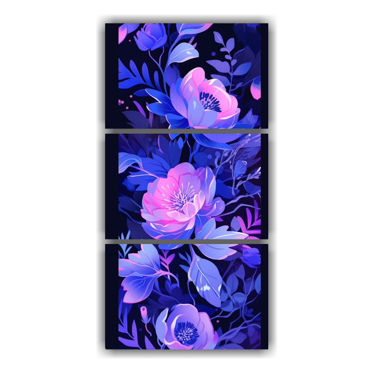 Este conjunto de 3 cuadros temáticos en tonos púrpura y azul es ideal para colocar en una sala de estar moderna o en un dormitorio elegante Crea un punto focal en la pared sobre un sofá o una cómoda para darle un aire misterioso y sofisticado a tu ambiente