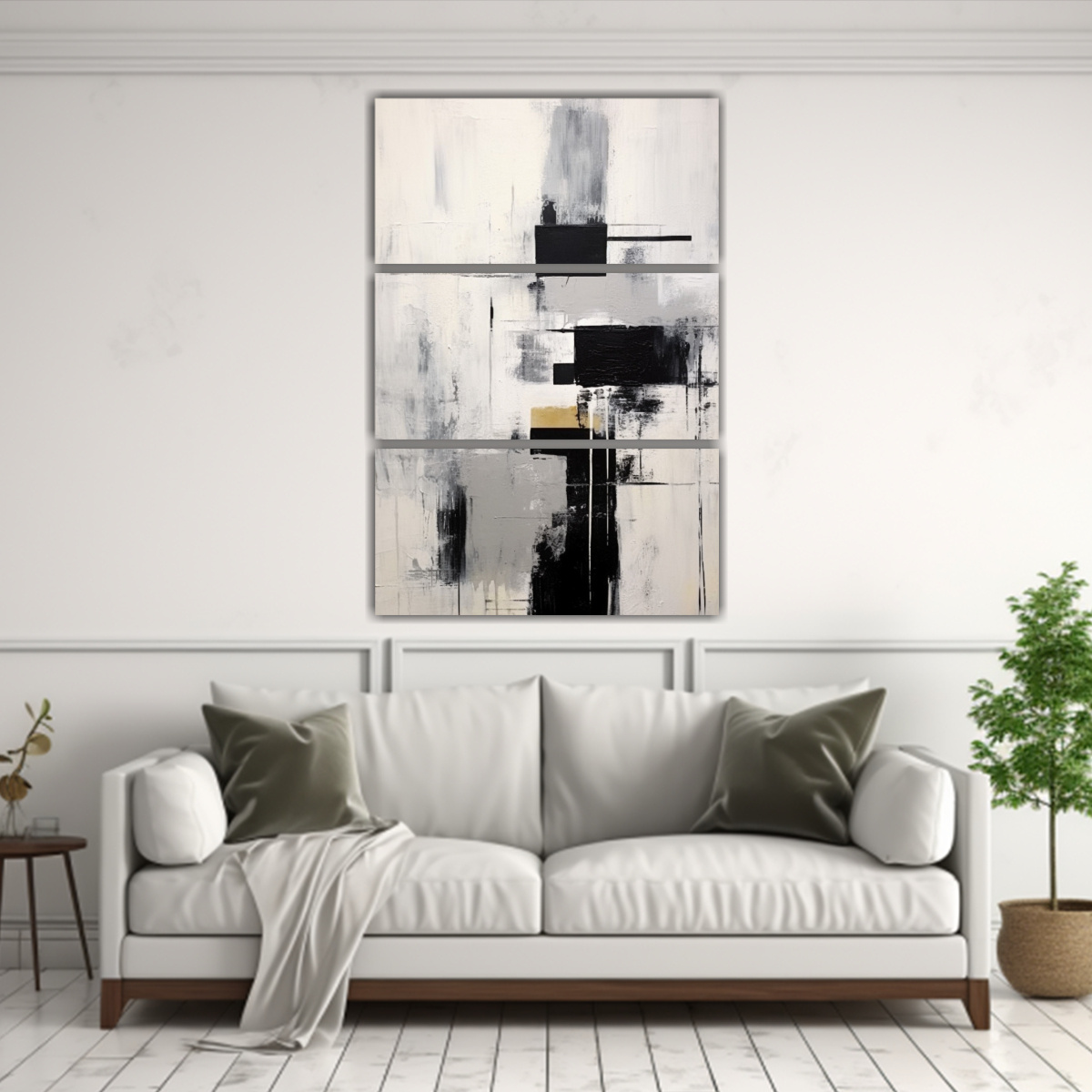 Este conjunto de 3 cuadros abstractos estilo escandinavo en blanco y negro sería perfecto para decorar una sala de estar minimalista Puedes colocarlos juntos en una pared blanca para crear un punto focal elegante y contemporáneo Combínalos con muebles en tonos neutros y acentos metálicos para lograr un ambiente moderno y sofisticado