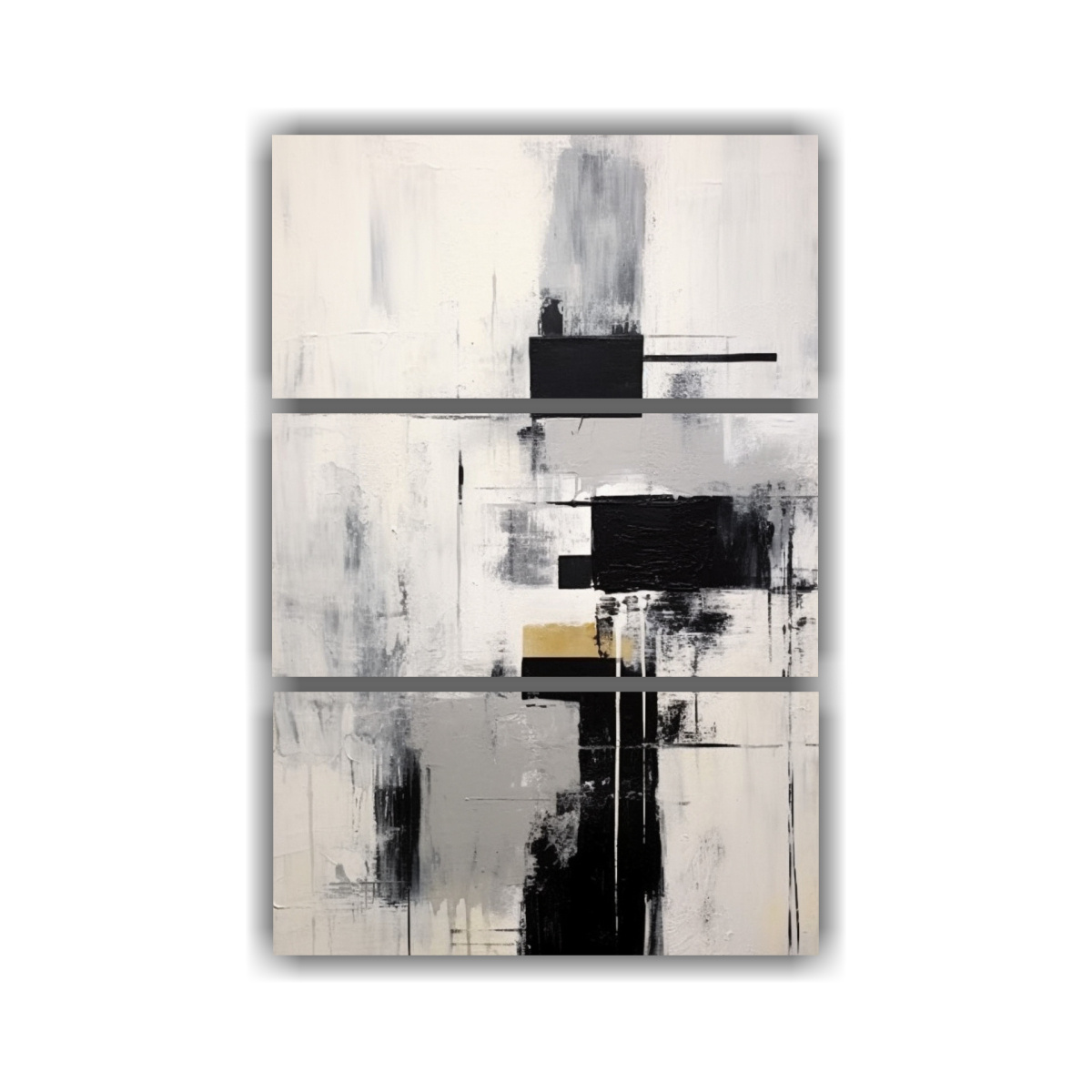 Conjunto De 3 Cuadros Abstractos Únicos Estilo Escandinavo Blanco Y Negro