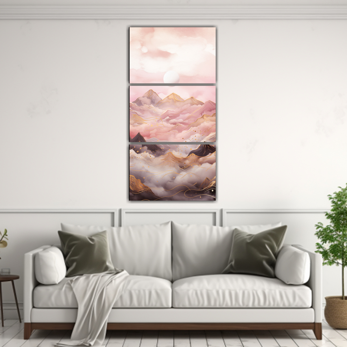 Conjunto De 3 Cuadros Decorativos Paisaje De Montaña Con Estilo Elegante Destacando