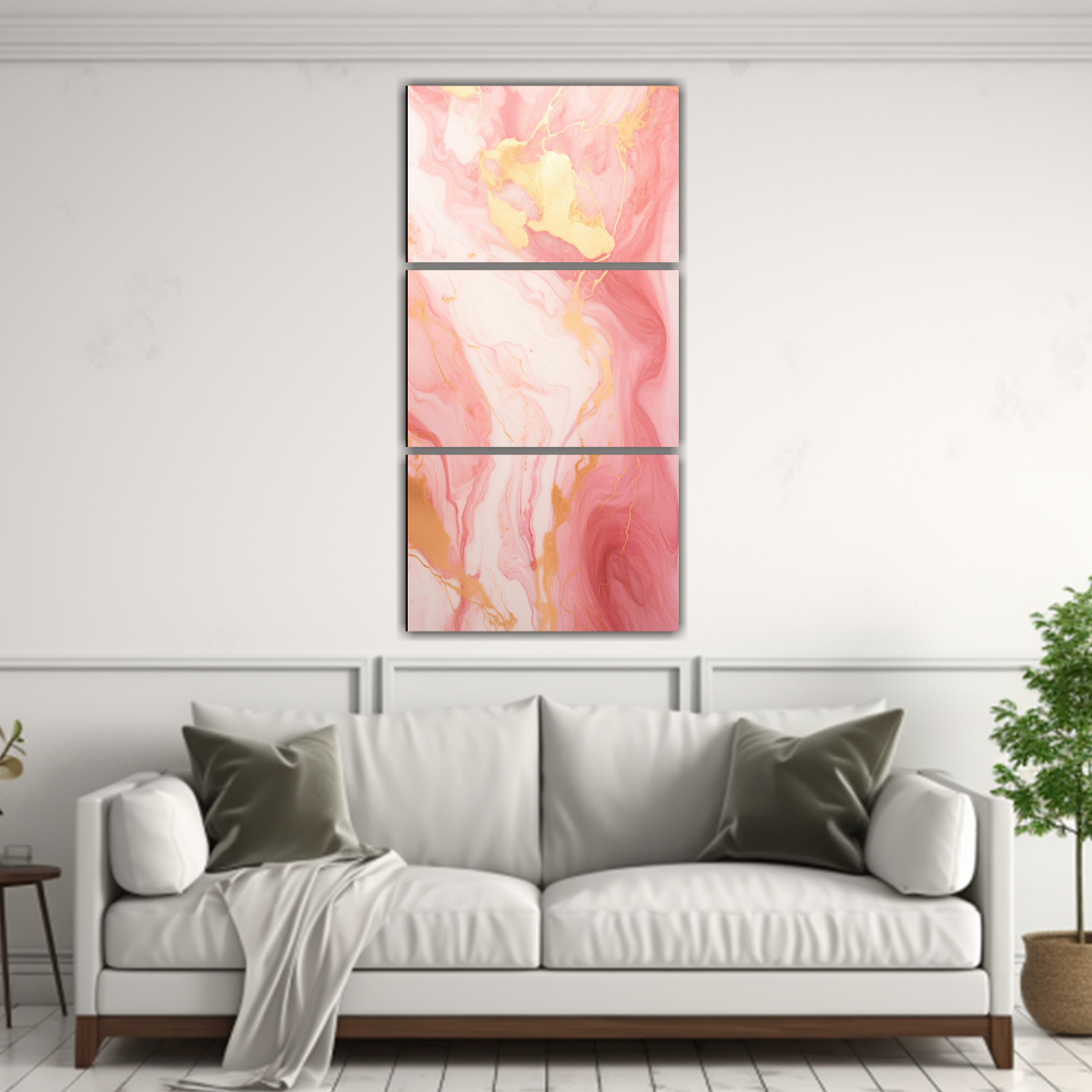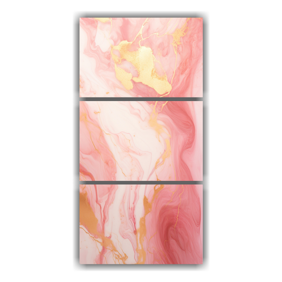 Conjunto De 3 Cuadros Decorativos Para La Cocina Con Fondo Abstracto De Mármol Rosa Y Dorado