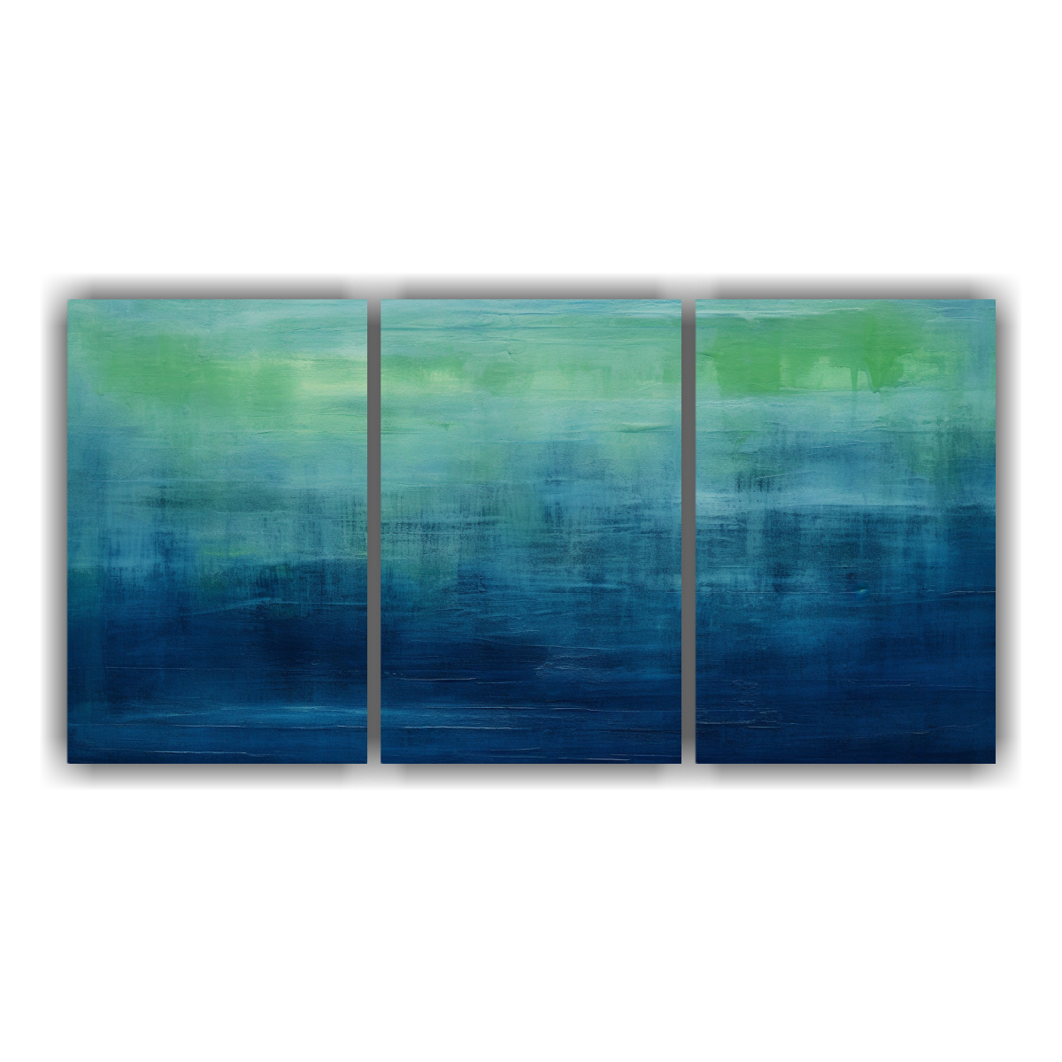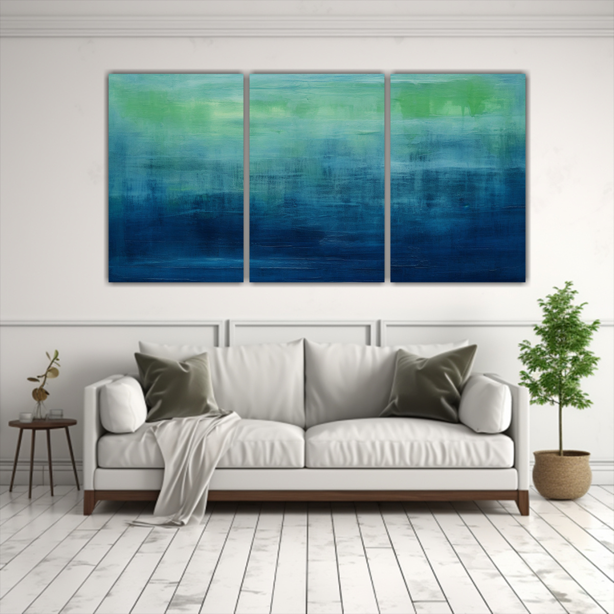DecoCuadros te ofrece un conjunto de 3 cuadros estilo galería inspirados en Mark Rothko con una combinación de colores en verde azulado, turquesa, azul marino grisáceo y menta Impresos en tela de alta calidad y montados en bastidores de madera, nuestros cuadros son una opción perfecta para la decoración de tu hogar Con diseños exclusivos y la mejor relación calidad-precio del mercado, en DecoCuadros nos destacamos por nuestras entregas rápidas y gratuitas en Santiago, así como por nuestros envíos express a regiones