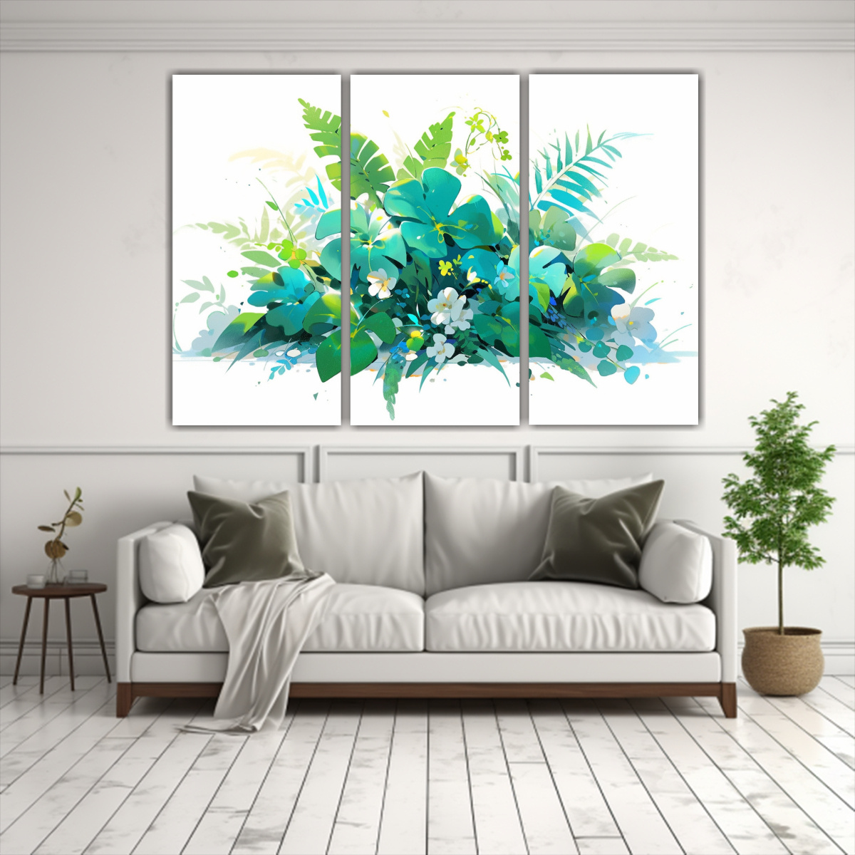 Este Conjunto de 3 Cuadros en tonos verde y turquesa es ideal para decorar tu sala de estar o dormitorio Colócalos juntos en una pared principal para lograr un impacto visual o distribúyelos en diferentes espacios para crear una atmósfera armoniosa Combínalos con muebles en tonos neutros para resaltar su belleza y disfruta de un ambiente único y acogedor