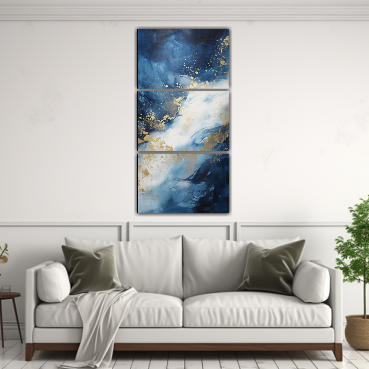 Este conjunto de 3 cuadros Vanguardia Clásico se verá espectacular en tu sala de estar Colócalos sobre un sofá de tonos neutros para resaltar los colores vibrantes de los cuadros Combínalos con cojines en tonos azules y blancos para crear una estética armoniosa ¡Sorprende a tus invitados con una decoración moderna y elegante!