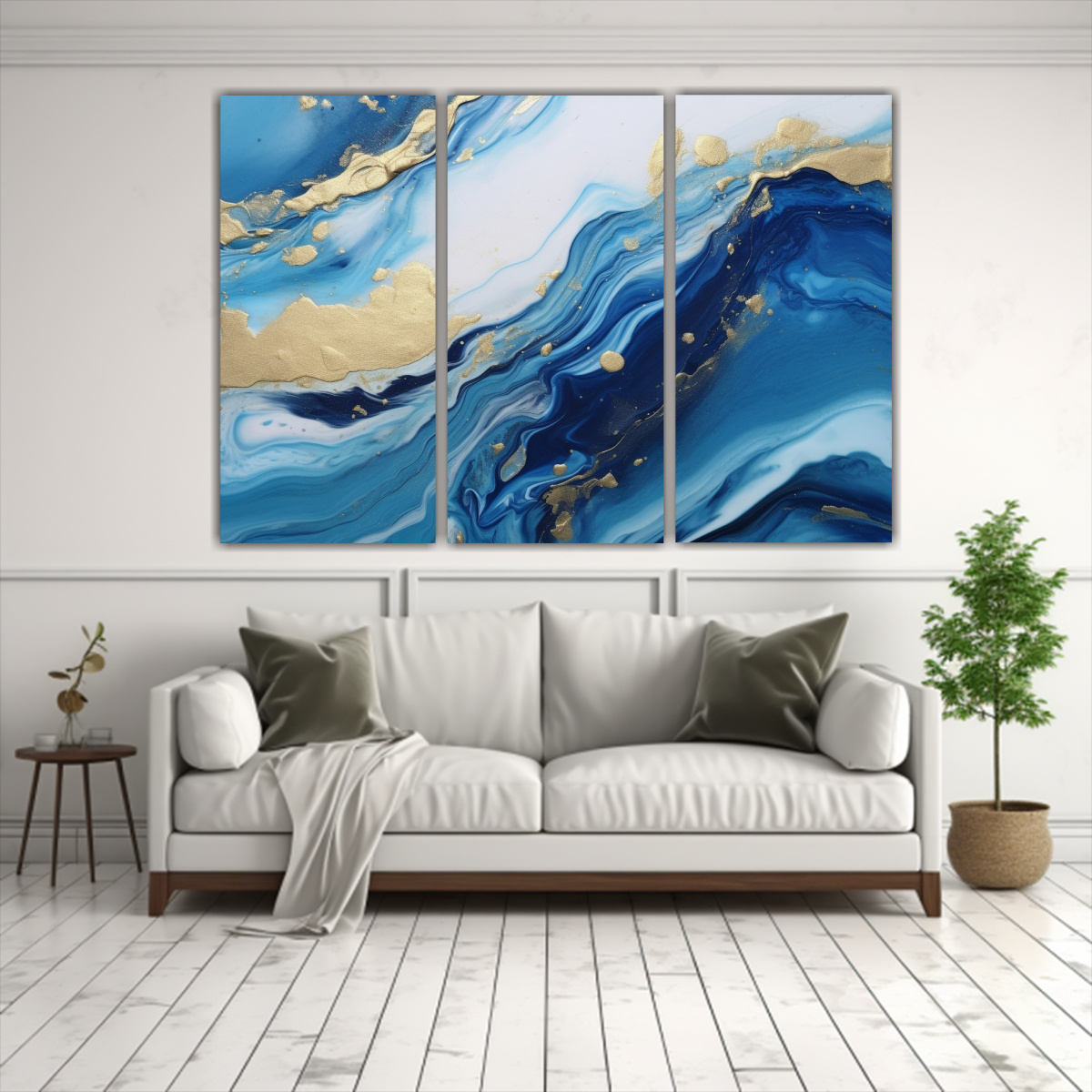 Conjunto De 3 Lienzos De Tela Acuarela Escenario Abstracto Océano Arte Natural