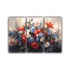 Conjunto De 3 Lienzos De Tela Vintage Originales En Rojo Y Negro Con Flores.