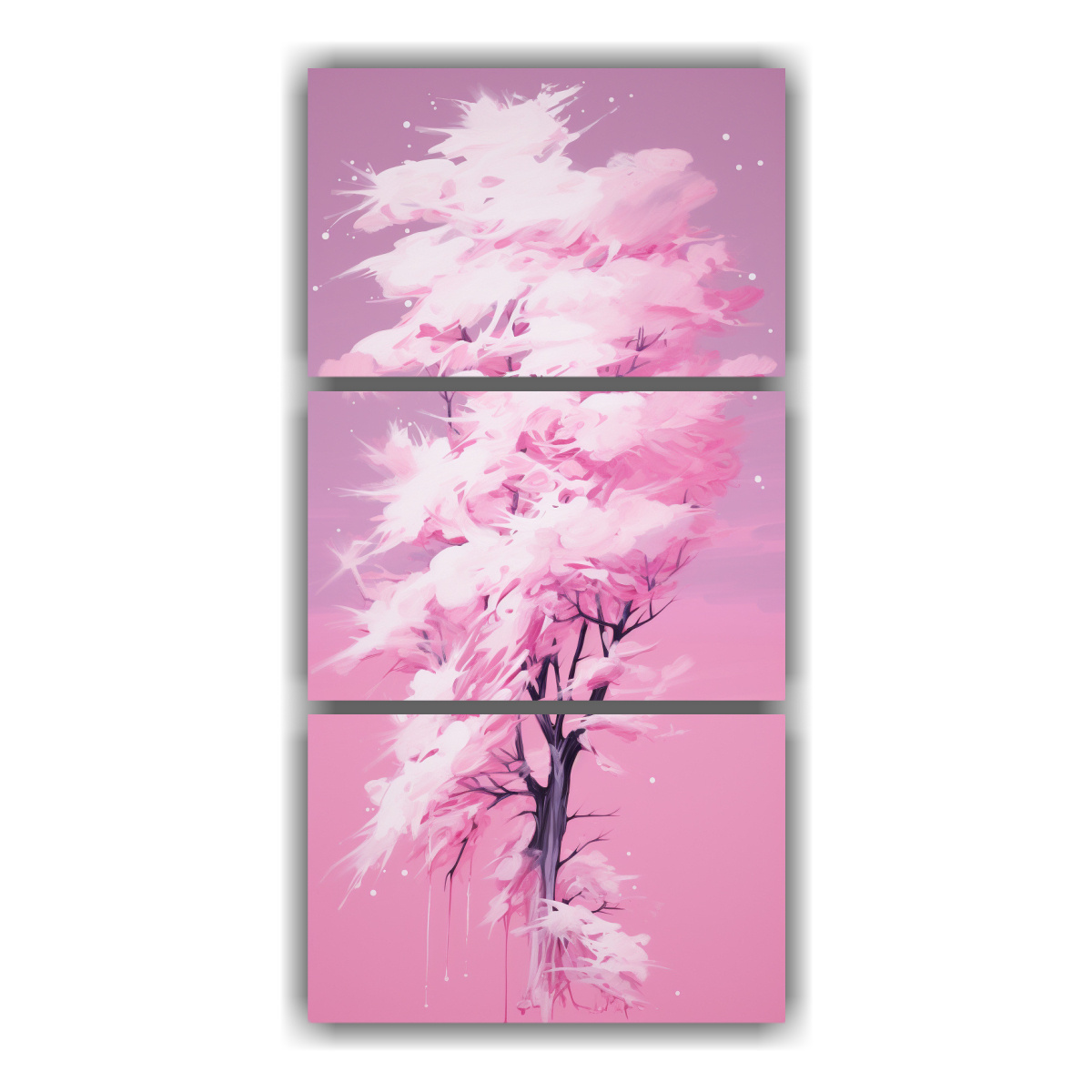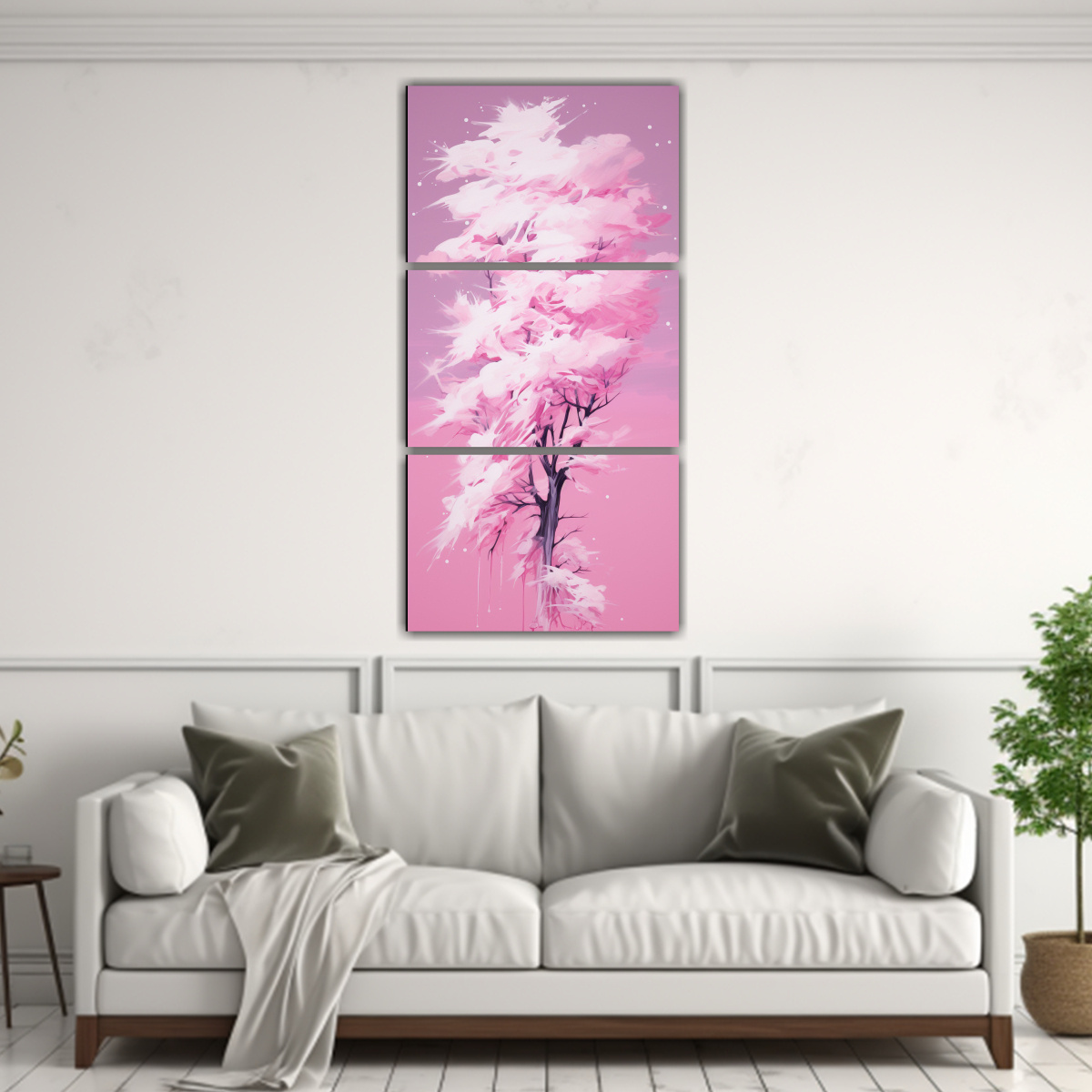 Conjunto De 3 Lienzos De Tela Vintage Para Cuarto Con árbol De Ciprés En Blanco Y Rosa, Atmósfera Neonoir