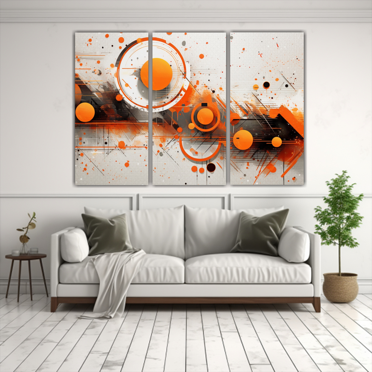 Conjunto De 3 Lienzos Modernos Con Estética De Diseño Abstracto De Círculos Y Triángulos En Tonos Naranja