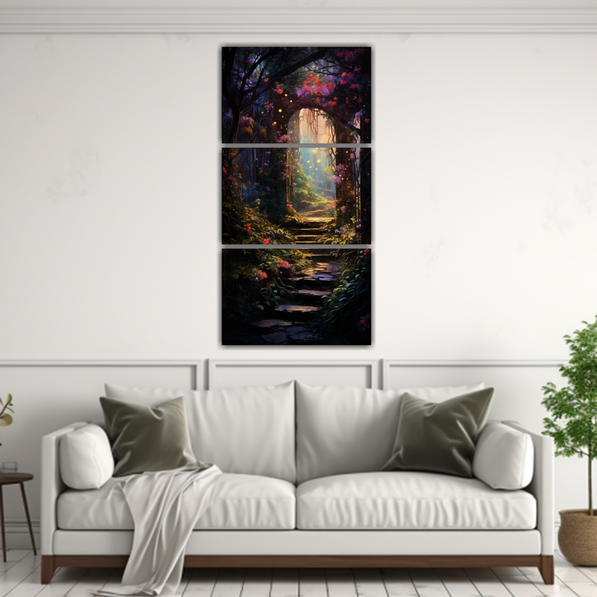 Conjunto De 3 Lienzos Movimiento Clásico El Misterio De Un Jardín Oculto Iluminado Por La Belleza De La Naturaleza