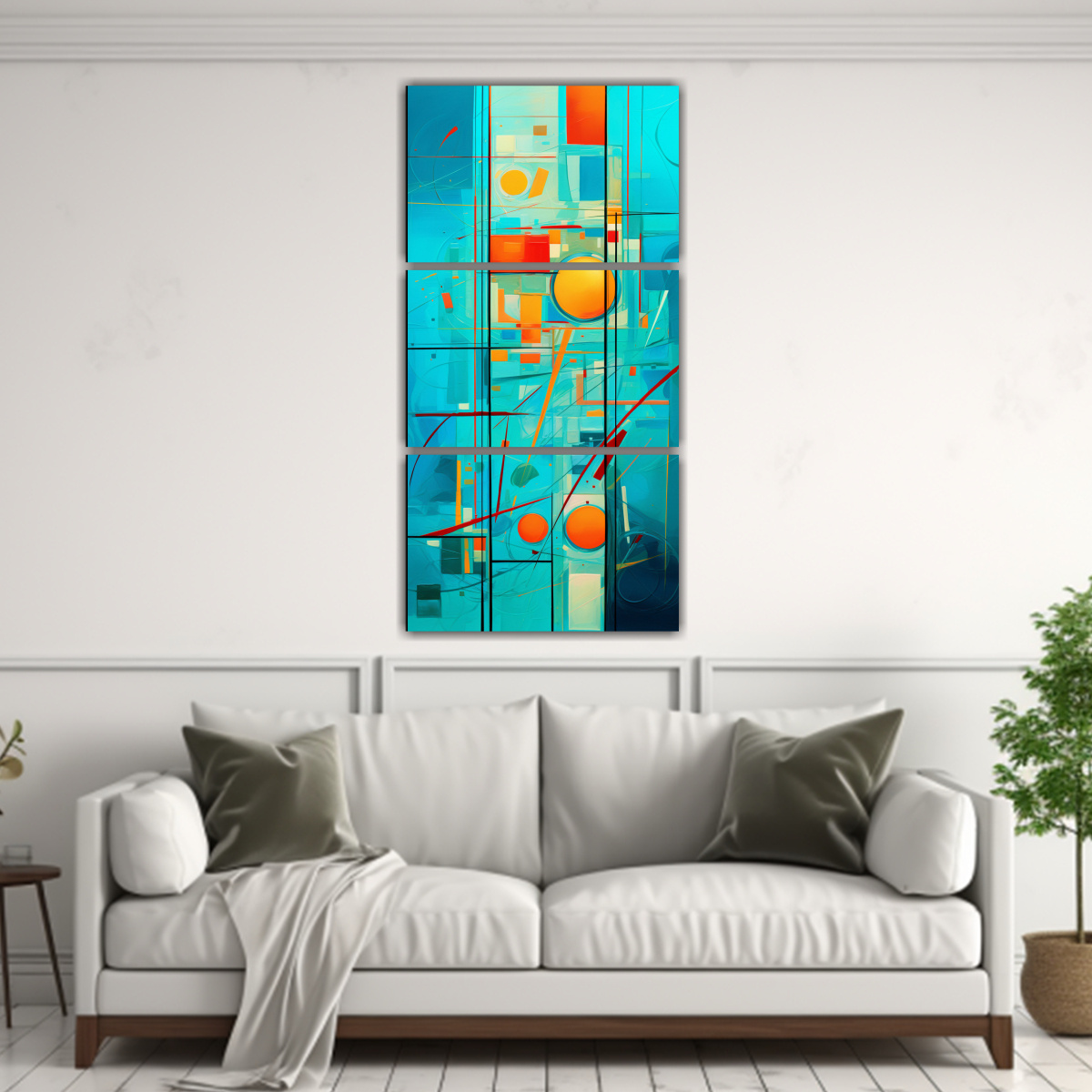 Este conjunto de 3 lienzos sublimados con motivos florales y abstractos en color turquesa es perfecto para decorar tu sala de estar Puedes colocarlos en una pared blanca para que resalten y creen un efecto visual impactante Combínalos con muebles en tonos neutros como el gris o el blanco para lograr un ambiente moderno y sofisticado ¡Atrévete a darle un toque de color y estilo a tu espacio con este conjunto de cuadros exclusivos de DecoCuadros!