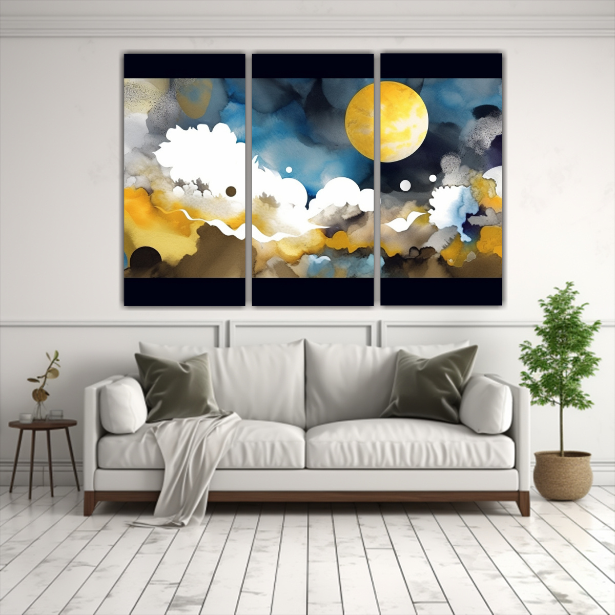 Este conjunto de 3 lienzos de tela acuarela poderoso es perfecto para realzar la decoración de tu sala de estar Colócalo sobre un sofá gris para lograr un contraste moderno y sofisticado ¡Impresiona a tus invitados con estilo y elegancia!
