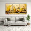 Conjunto De 3 Pinturas Abstractas Lineales En Tonos Amarillos