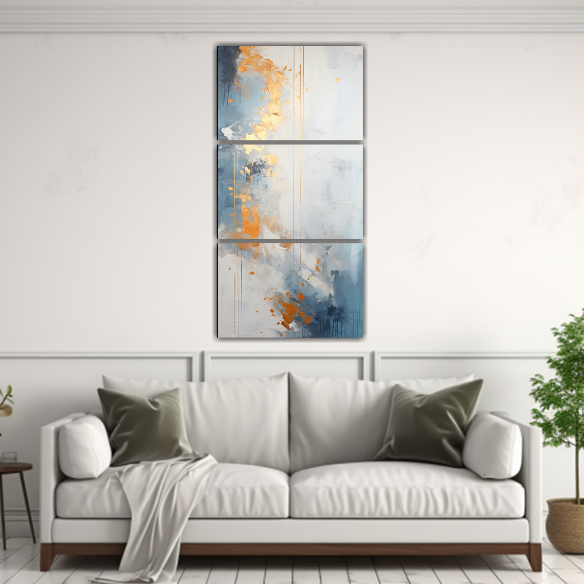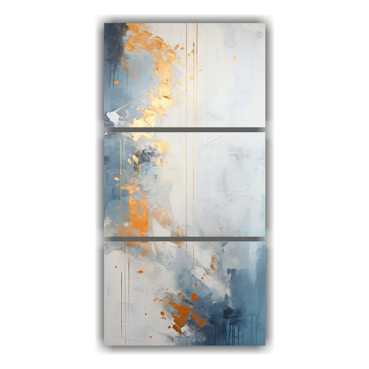 Conjunto De 3 Telas En Bastidor: Abstracto Pop Art Fondo De Pintura Blanca Con Dorado Y Cobre
