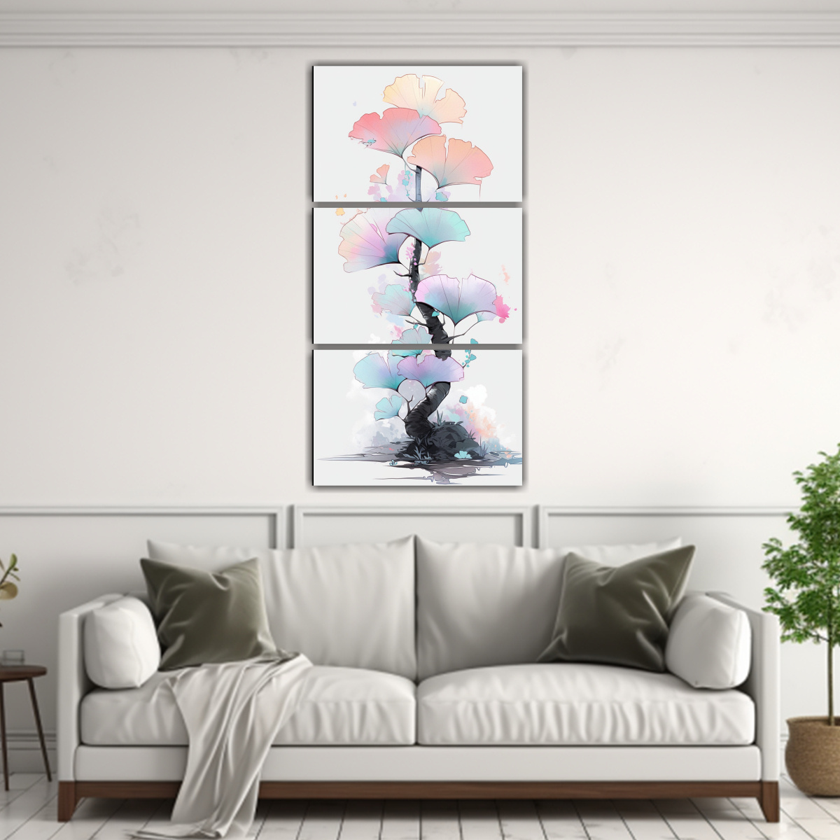 Conjunto De 3 Telas En Bastidor Tema Detalle Árbol Bonsái Ginkgo Biloba En Colores Pastel Neonoir