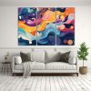 Coloca este conjunto de telas en bastidor vintage Pop Art en tu sala de estar para crear un ambiente moderno y lleno de energía Combina con muebles neutros para resaltar la vibrante paleta de colores