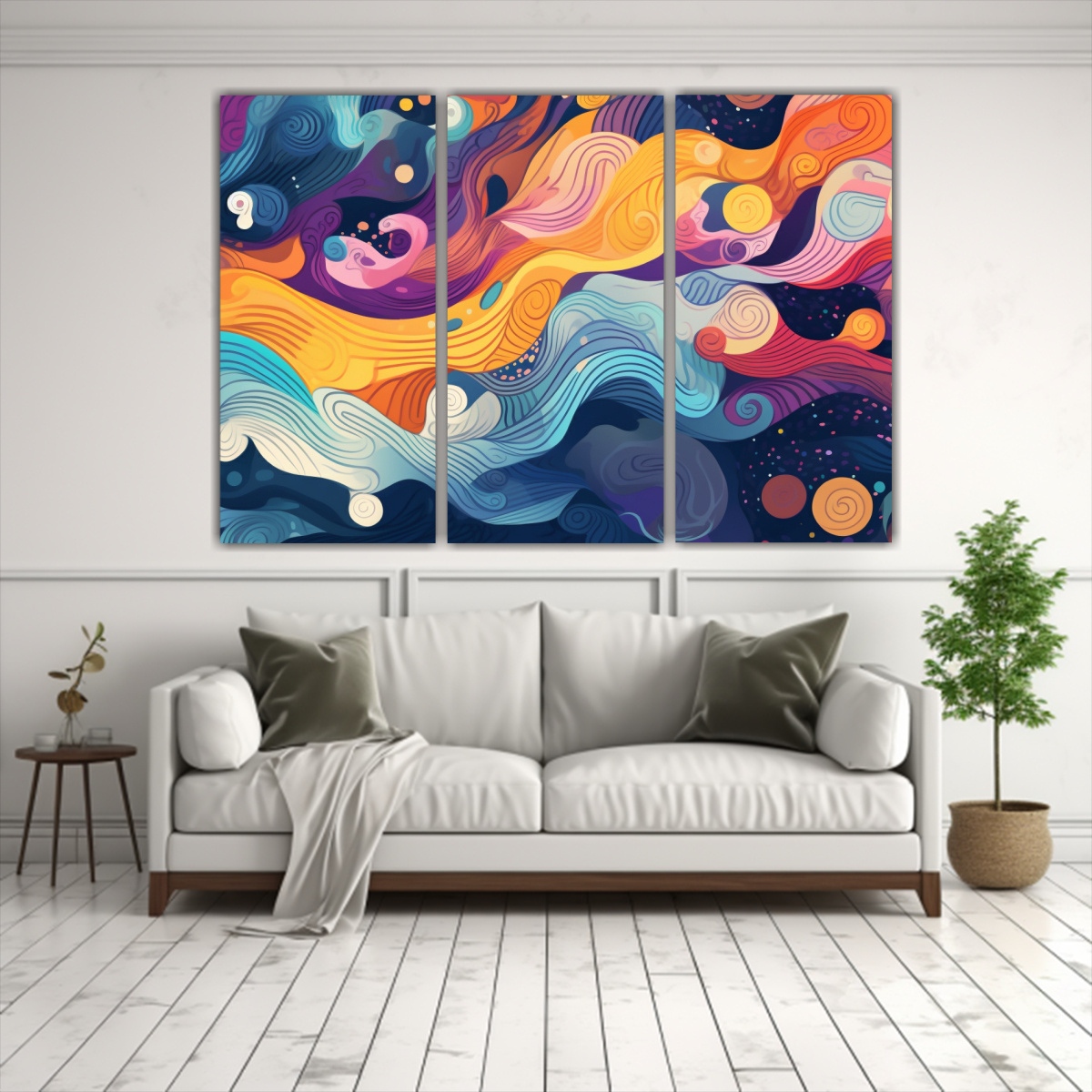 Conjunto De 3 Telas En Bastidor Vintage Pop Art: Crea Un Fondo Abstracto Vibrante Y Dinámico