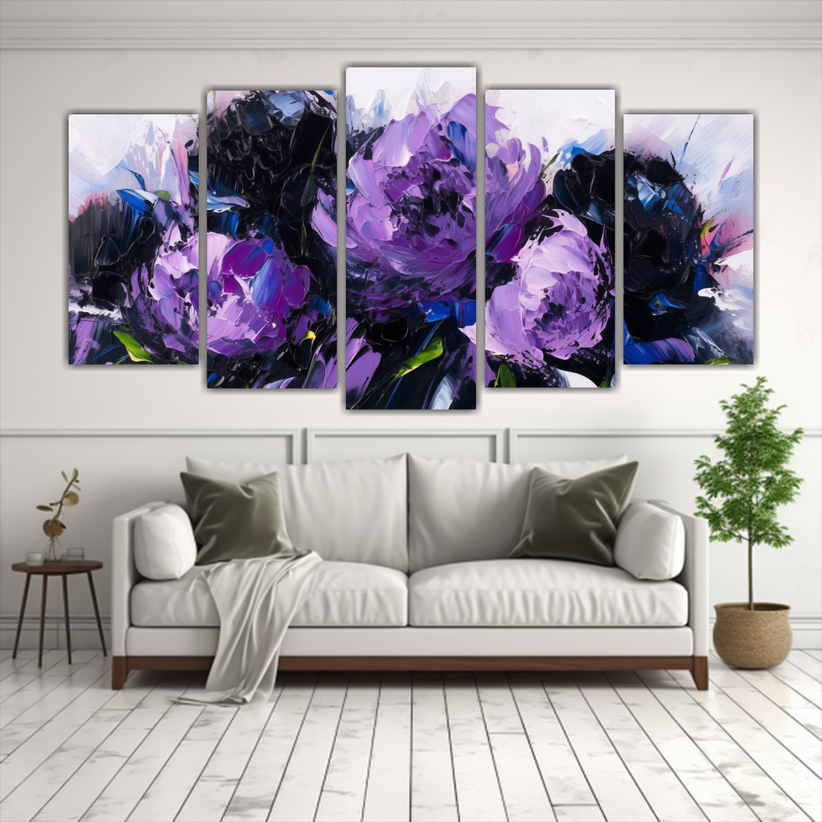 Este conjunto de cuadros se verá espectacular en la sala de estar o en el dormitorio Puedes colocarlos en una pared vacía para crear un punto focal o distribuirlos en diferentes espacios para un efecto más equilibrado Combínalos con muebles en tonos neutros para resaltar su belleza o con muebles en tonos violeta y negro para crear una estética más audaz ¡Deja volar tu imaginación y transforma tu hogar con estos hermosos cuadros!