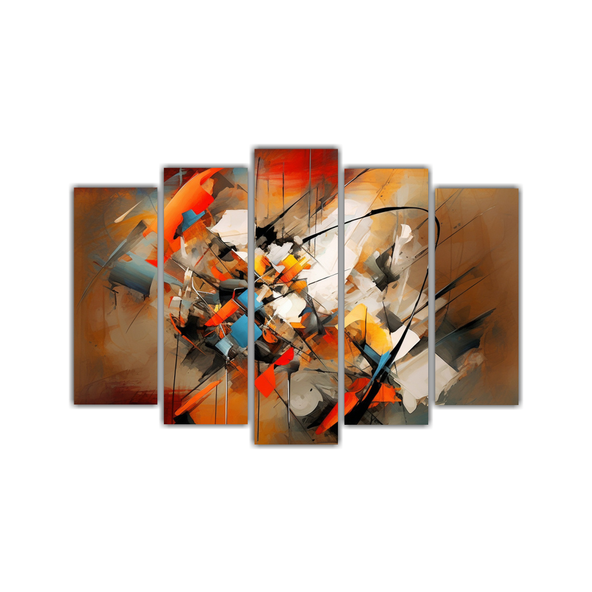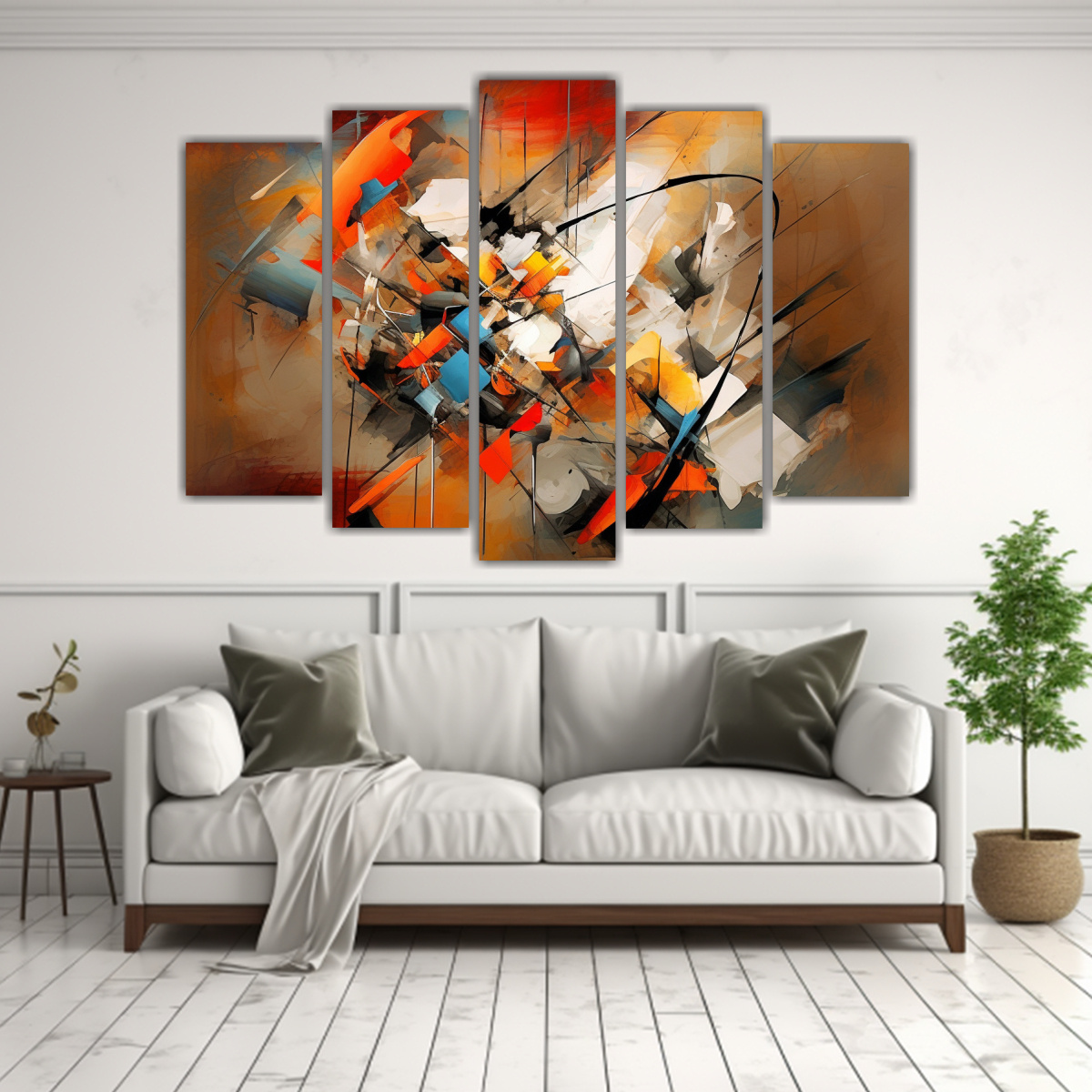 Coloca este Conjunto de 5 Cuadros Abstractos en la pared principal de tu sala de estar para crear un impacto visual Combina los tonos con cojines y mantas en tonos cálidos para lograr un ambiente acogedor y moderno