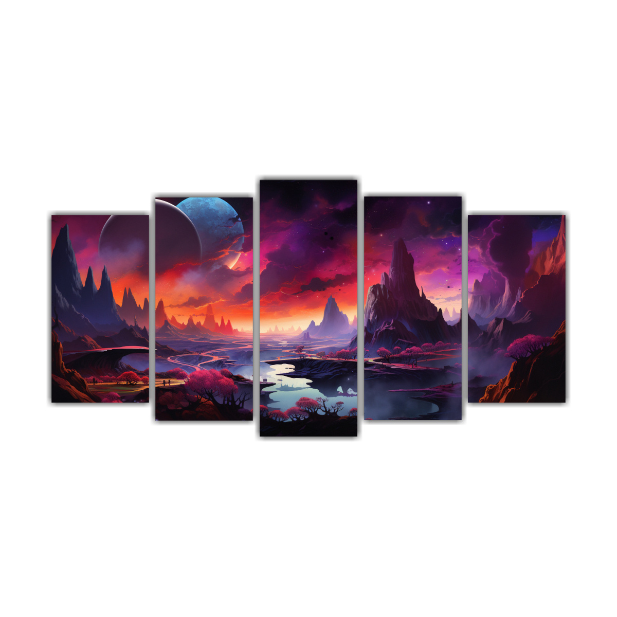 Conjunto De 5 Cuadros Conceptuales Motivo Abstracto Reinterpretación De Un Paisaje Cósmico I