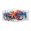Conjunto De 5 Cuadros De Calamar En Colores Ric Y Ciruela, Arte Pop Neo.