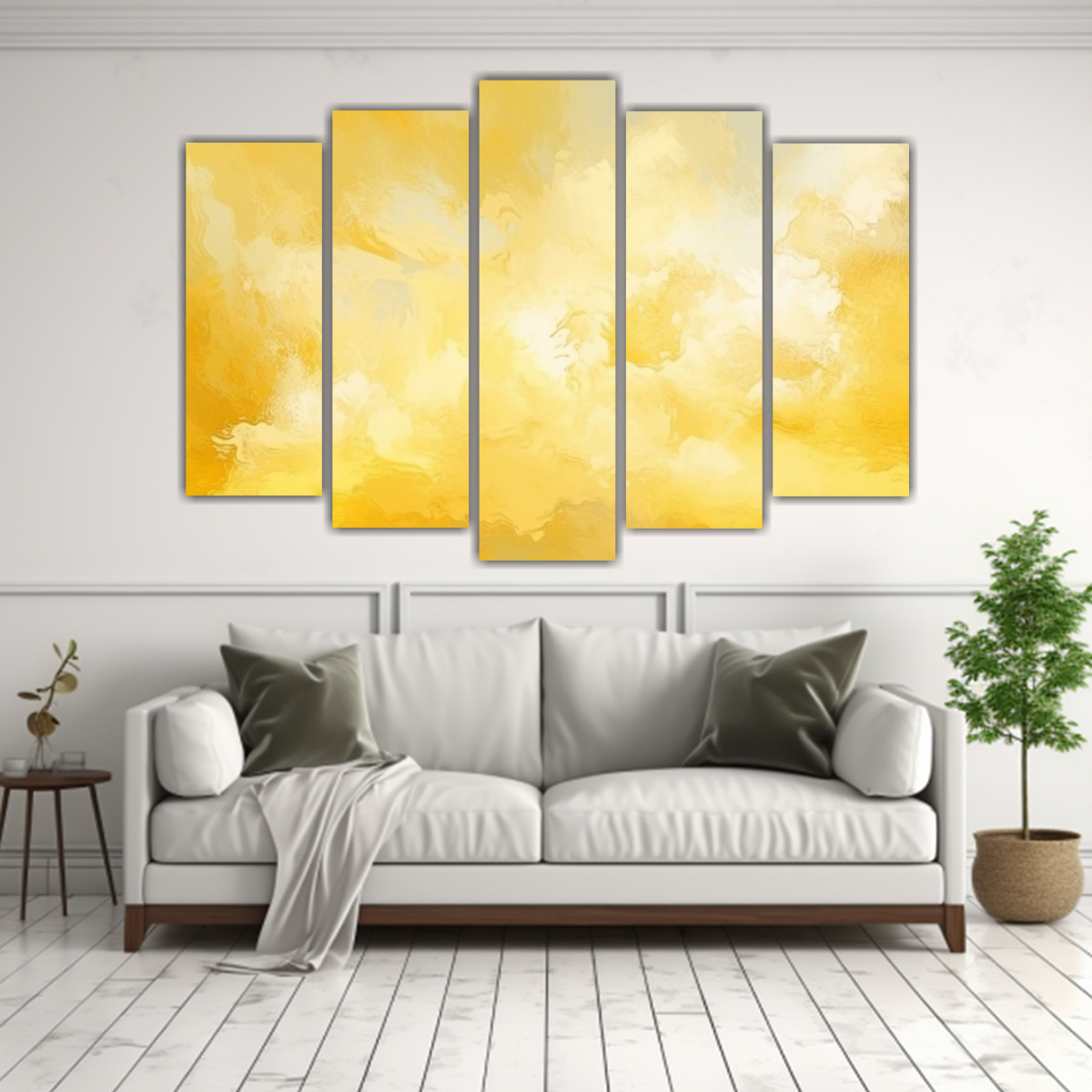 Conjunto De 5 Cuadros Decorativos Abstractos Cielo Fantasía Amarillo Pastel