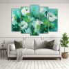 Conjunto De 5 Cuadros Decorativos En Tela Con Flores En Verde Y Turquesa