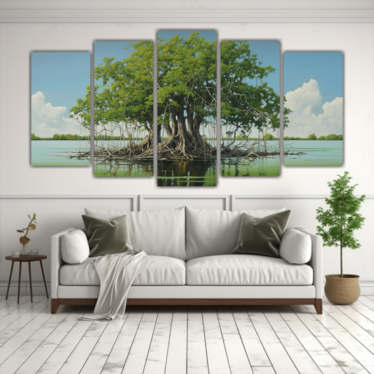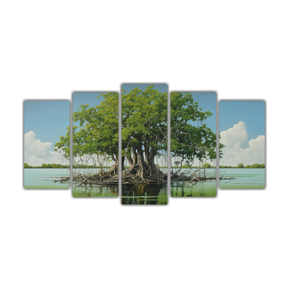 Conjunto De 5 Cuadros Tela Canvas Comedor Árbol De Manglar Estilo Pintura Abstracta