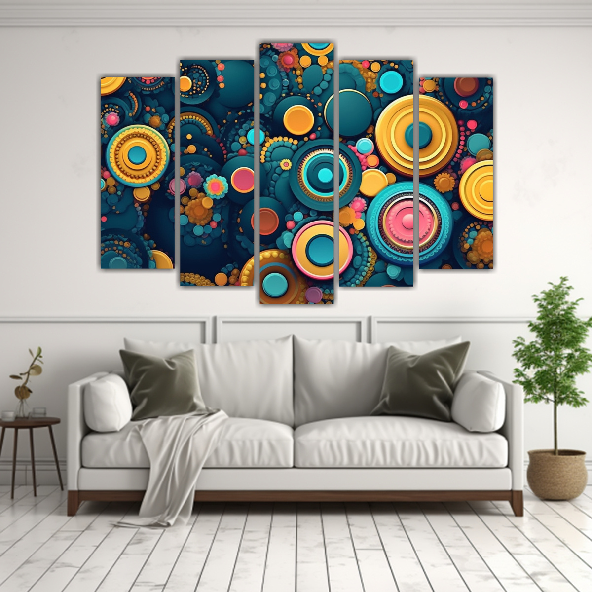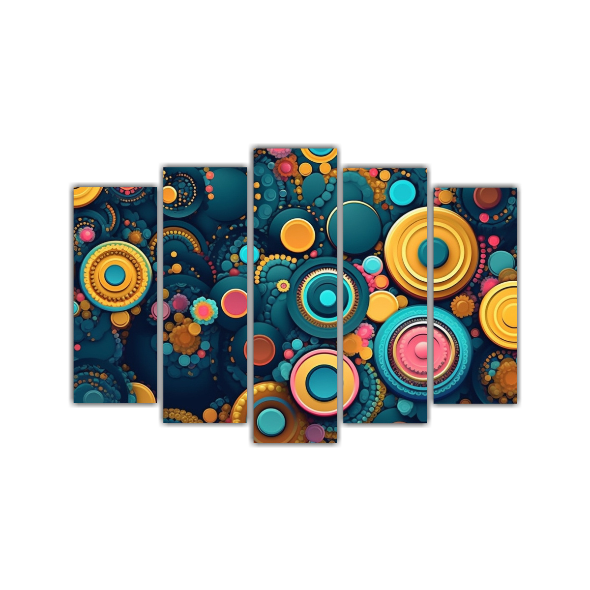 Conjunto De 5 Lienzos Cuadro Luminosa Con Patrones Circulares Contemporáneos