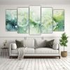 Conjunto De 5 Lienzos En Bastidor Para Cocina: Inspiración Abstracta De Flores De Diente De León En Tonos Verdes Y Blancos