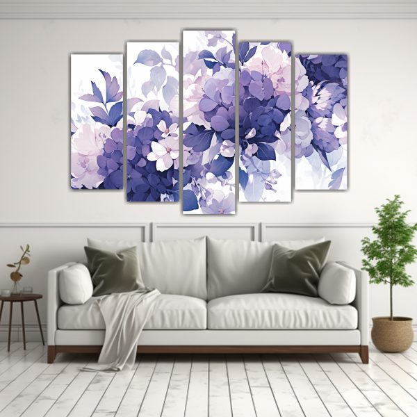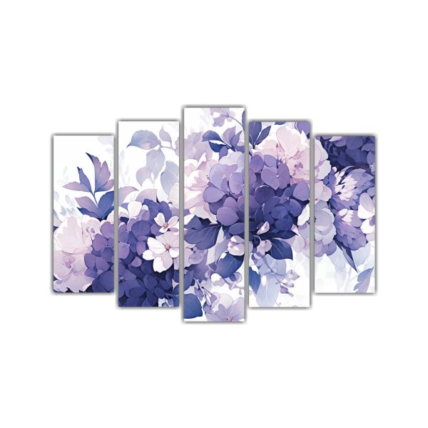 Conjunto De 5 Telas En Bastidor Estilo Galería Púrpura Y Blanco Para Decoración Con Atmosfera Neonoir