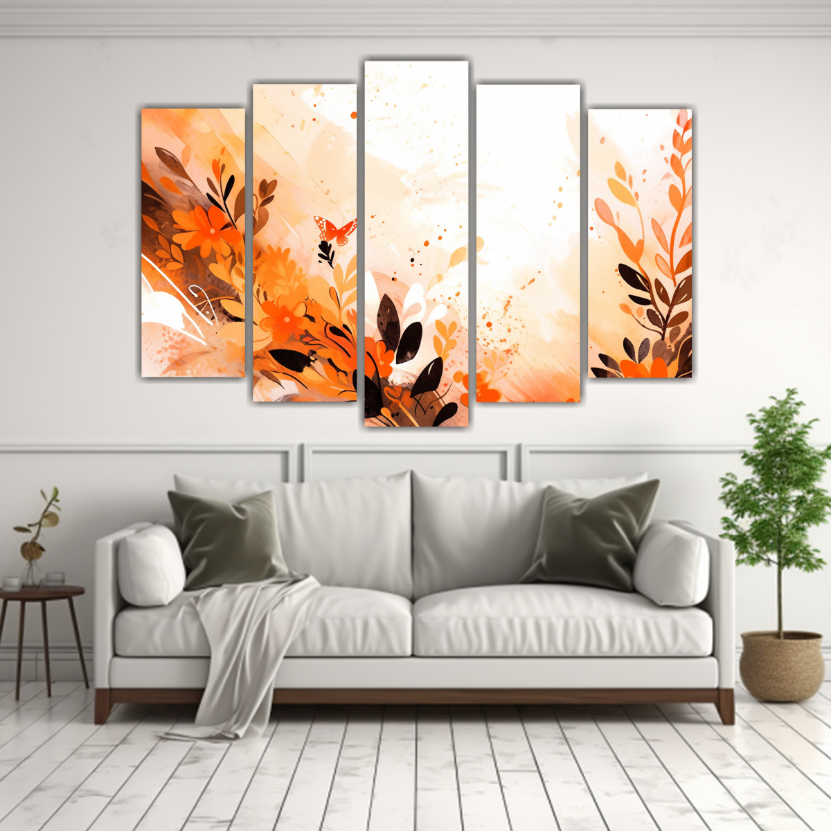 Para realzar la belleza de este conjunto de 5 telas en bastidor, te recomendamos colocarlo en una pared blanca para que los colores resalten aún más Combínalo con muebles en tonos neutros y elementos decorativos en negro para lograr un ambiente moderno y sofisticado