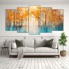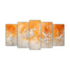 Este conjunto de 5 telas en bastidor vintage con un estilo de pintura en naranja y dorado será perfecto para decorar tu sala de estar Colócalo sobre un sofá de tonos neutros para que los colores plateado, menta, mostaza, gris, chocolate, coral y azul marino grisáceo resalten y creen un ambiente cálido y sofisticado También puedes combinarlo con cojines en tonos similares para lograr una armonía visual ¡Dale un toque de personalidad a tu hogar con este hermoso conjunto de telas!