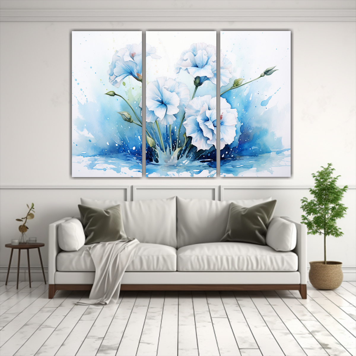 Coloca estos cuadros en la sala de estar para crear un ambiente fresco y sofisticado Combínalos con muebles blancos y detalles en tonos plateados y lilas para lograr una decoración armoniosa y elegante