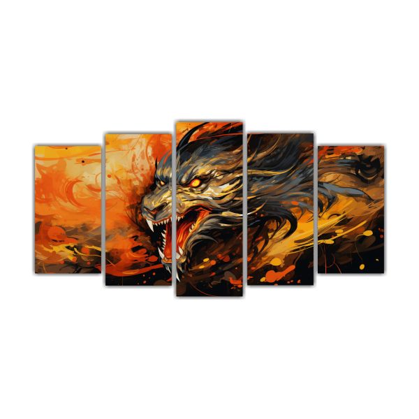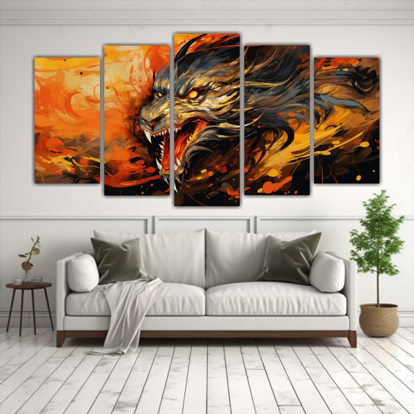 Este conjunto de cuadros calidos brillante con dragón en colores naranja y oro es ideal para decorar tu sala de estar creando un ambiente misterioso y sofisticado Colócalos juntos en una pared principal para un impacto visual impresionante