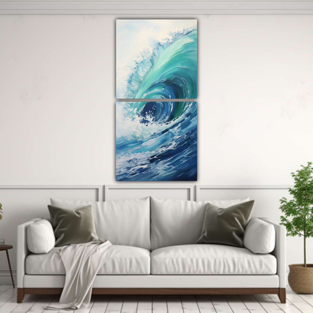 Conjunto De Cuadros Decorativos Esencia Rítmica Abstracta De Un Océano En Movimiento