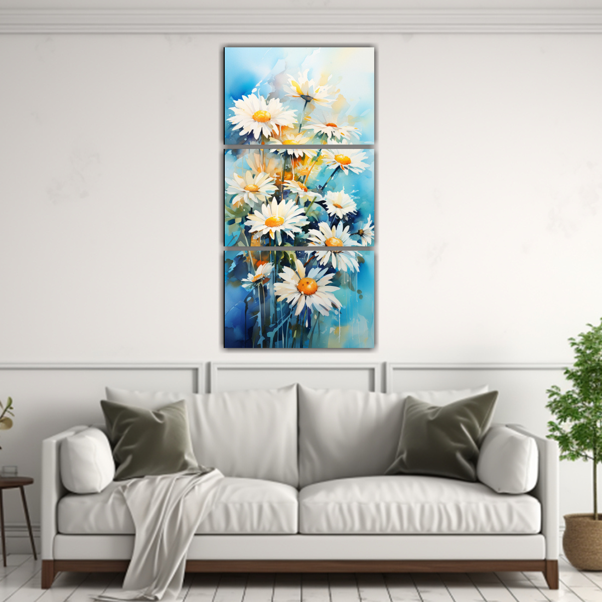 Conjunto De Cuadros En Bastidor De Cuadro Colorida Con Margaritas Amarillas Y Turquesa