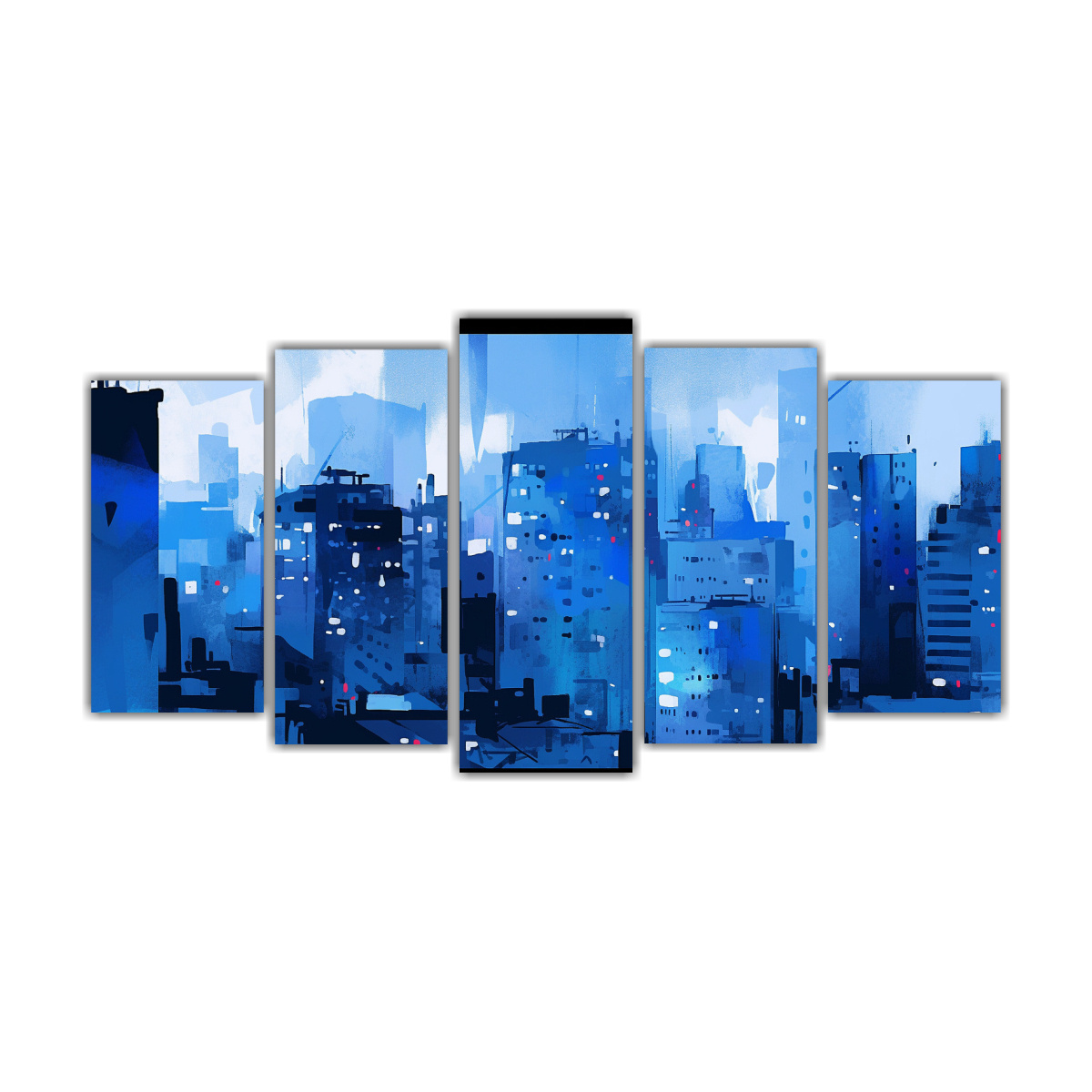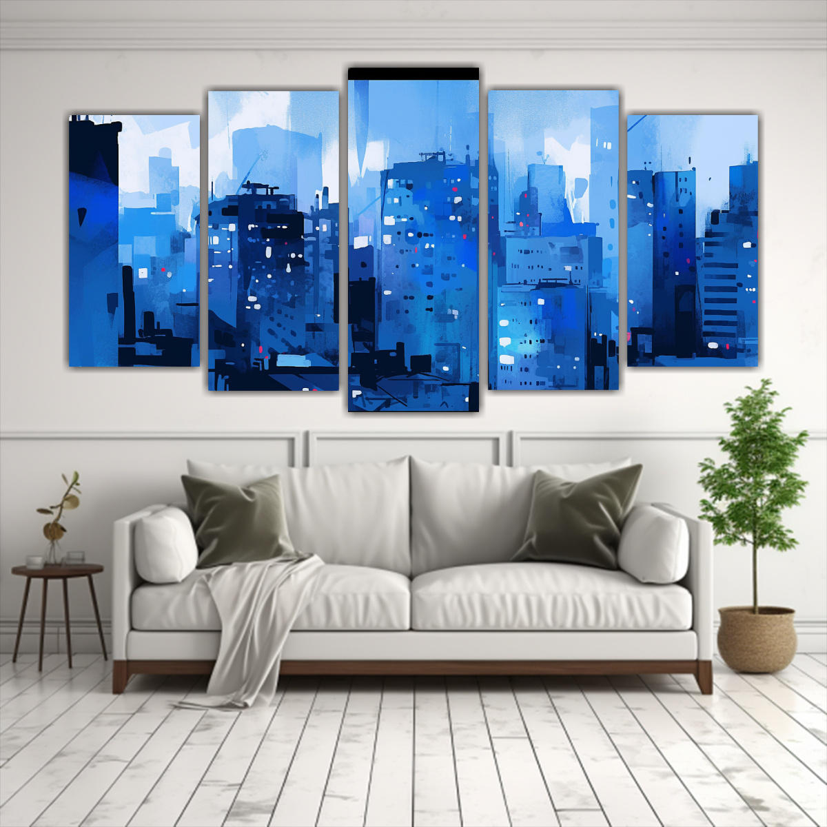Conjunto De Lienzos De Tela Dibujo De Santiago En Azul, Estilo Neonoir