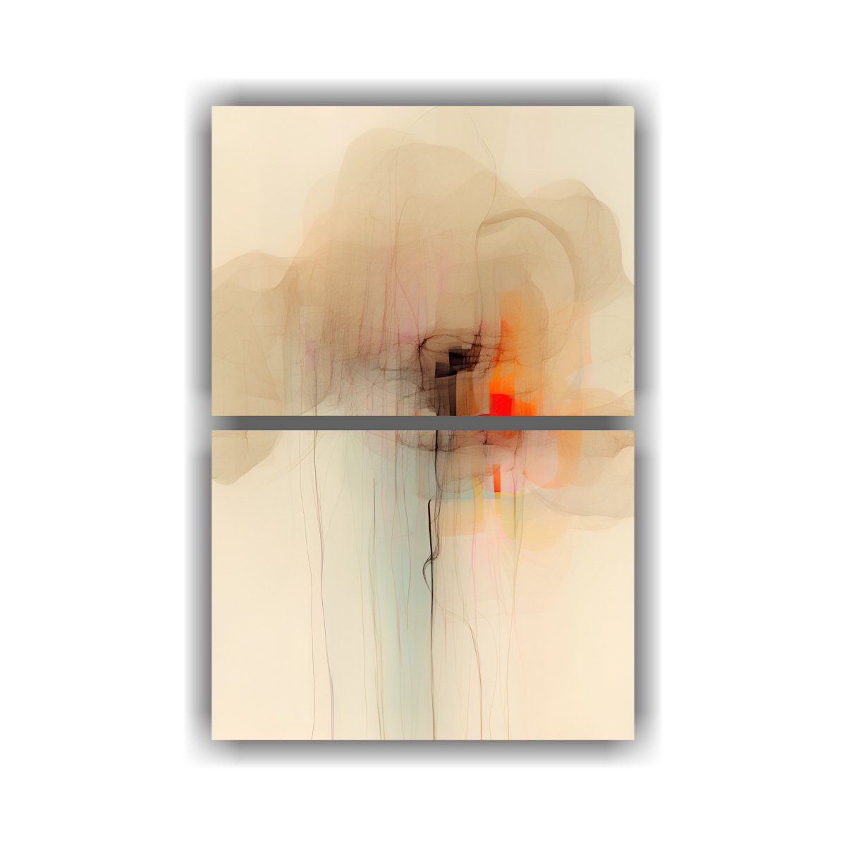 Dale vida a tus paredes con el Conjunto de Pinturas Modernas para Interiores de DecoCuadros Este set de 2 lienzos impresos en tela de alta calidad con bastidores de madera, en colores Beige, Carmesí, Azul Marino grisáceo, Coral, Gris y Plateado, es perfecto para añadir un toque moderno y sofisticado a cualquier espacio