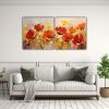 Conjunto De Telas En Bastidor Con Movimiento De Figuras, Pintura De Flores Amarillas Y Rojas En El Decorado
