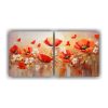 Conjunto De Telas En Bastidor De Decoración Con Flores Rojas Y Azules En Bastidor De Madera