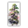 Conjunto De Telas En Bastidor Modernos De Increíble Árbol Bonsái De Abeto En Colores Amarillo Y Rojo Neonoir
