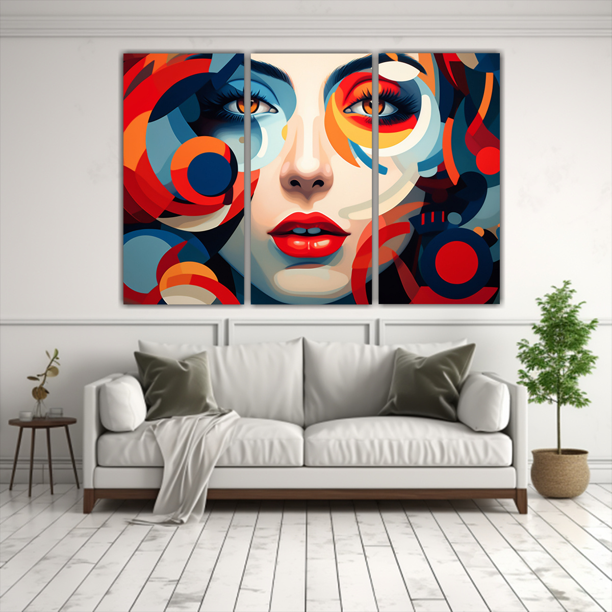 Añade un toque de color y modernidad a tu hogar con este conjunto de tríptico abstracto que destaca por sus formas superpuestas y su paleta de colores vibrantes Envíos gratuitos en Santiago y entregas express a regiones
