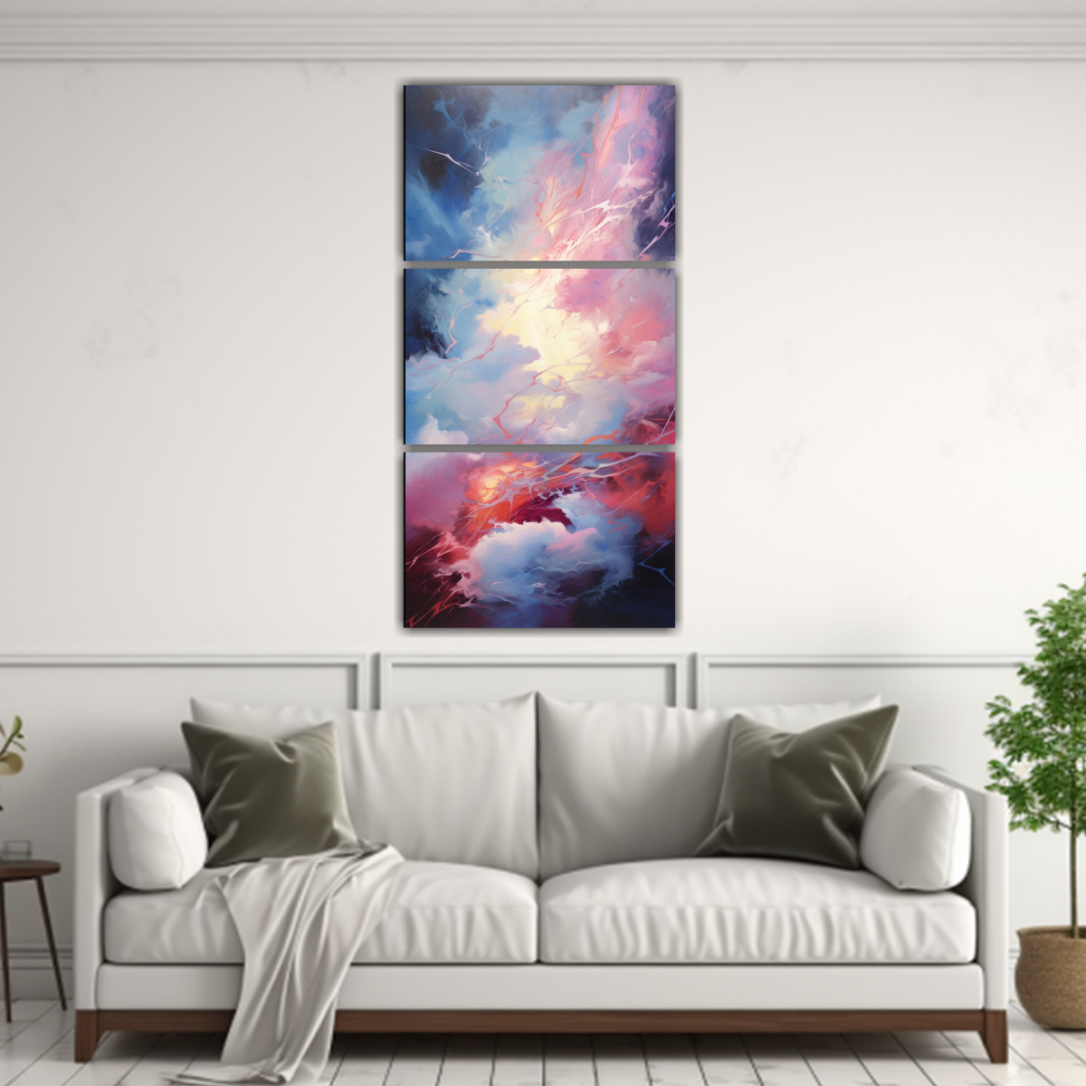 Este conjunto de lienzos caos energético se vería espectacular en el salón, creando un punto focal llamativo sobre un sofá gris o en una pared beige Complementa con cojines en tonos rosado claro y coral para lograr un look armonioso y a la moda