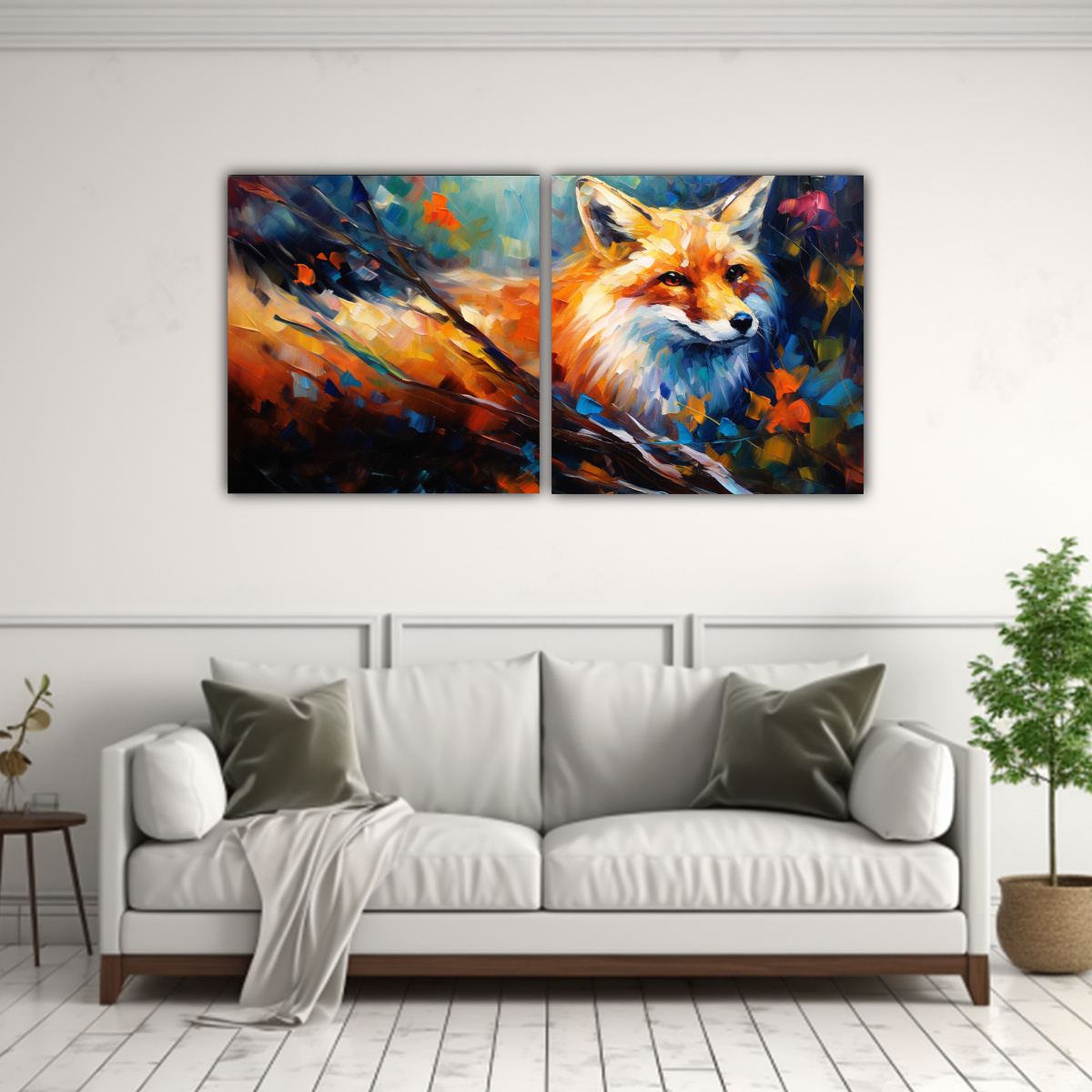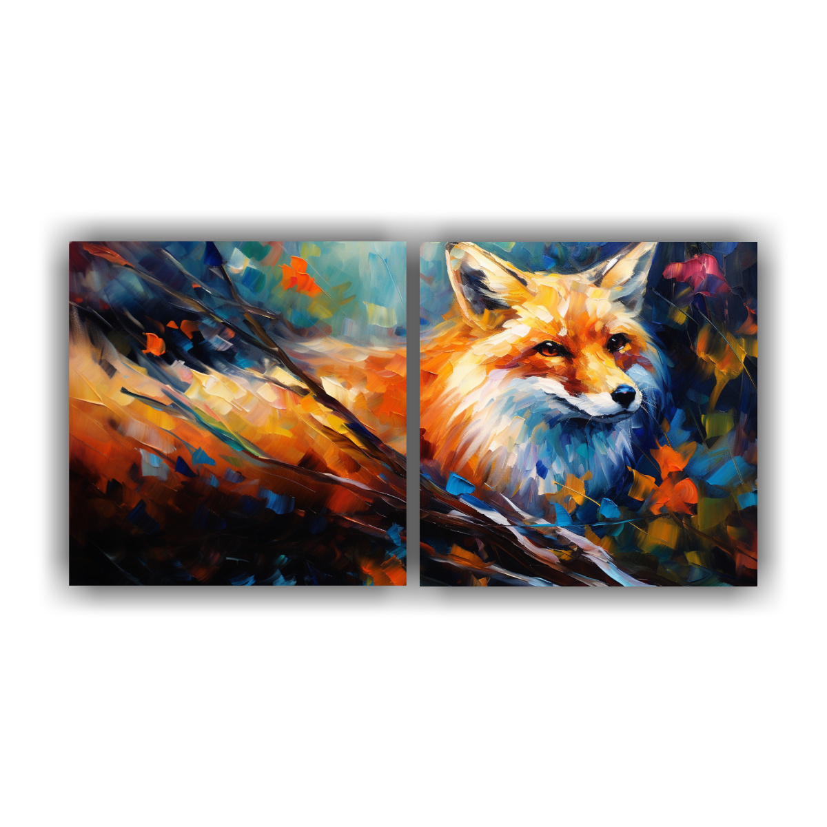 Renueva tu hogar con estas telas en bastidor de alta calidad con motivos de zorros en tonos vibrantes Complemento perfecto para cualquier ambiente