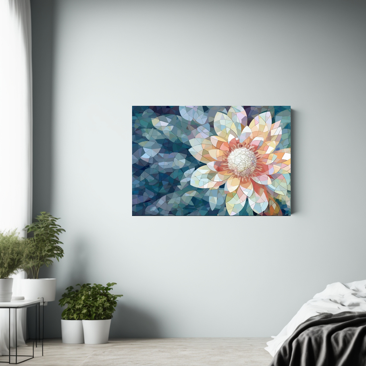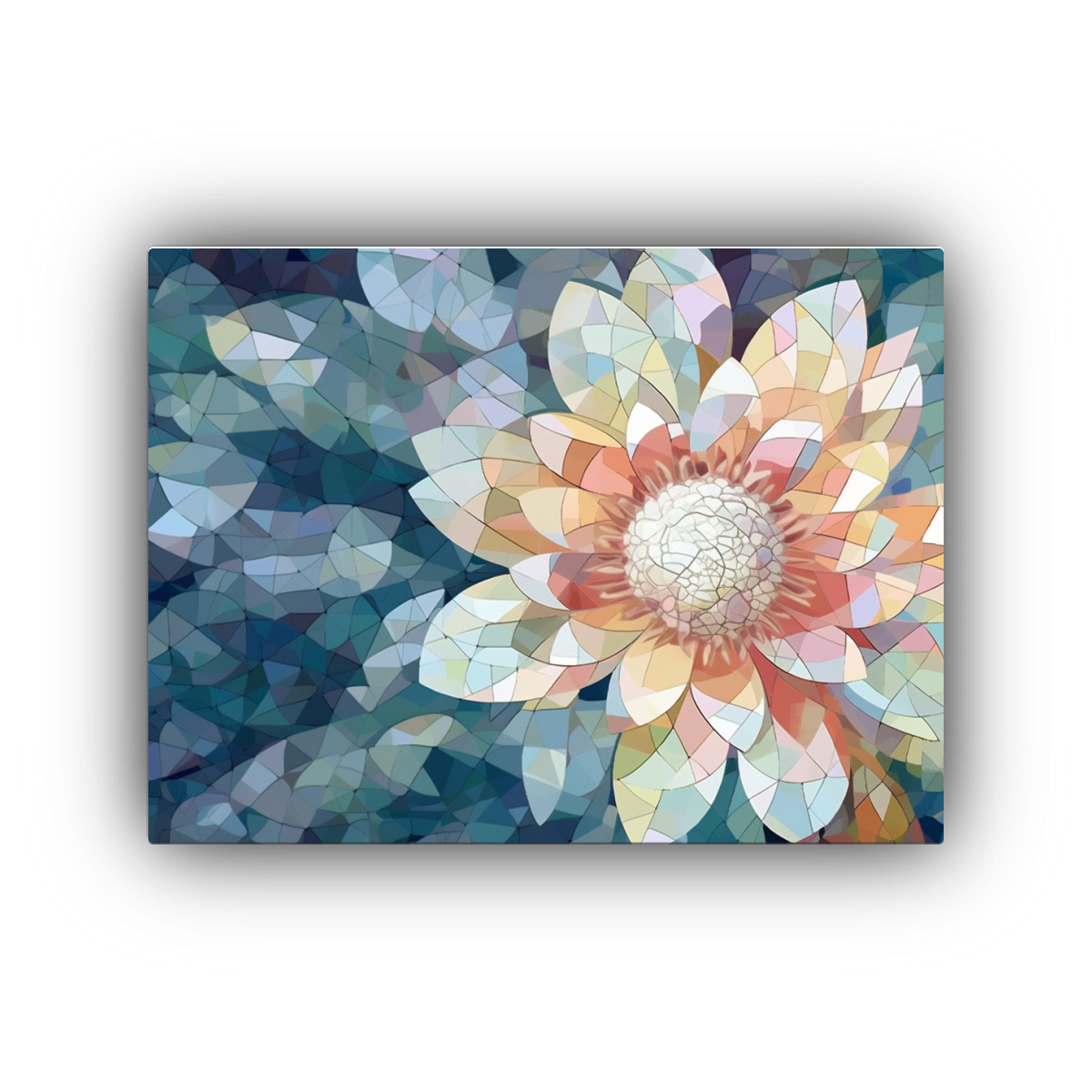 Este cuadro de mosaico digital inspirado en flores se vería espectacular en el salón principal de tu hogar, sobre un sofá de color neutro para resaltar sus tonalidades Complementa la decoración con cojines en tonos plateados, azules y corales para lograr un ambiente armonioso y elegante