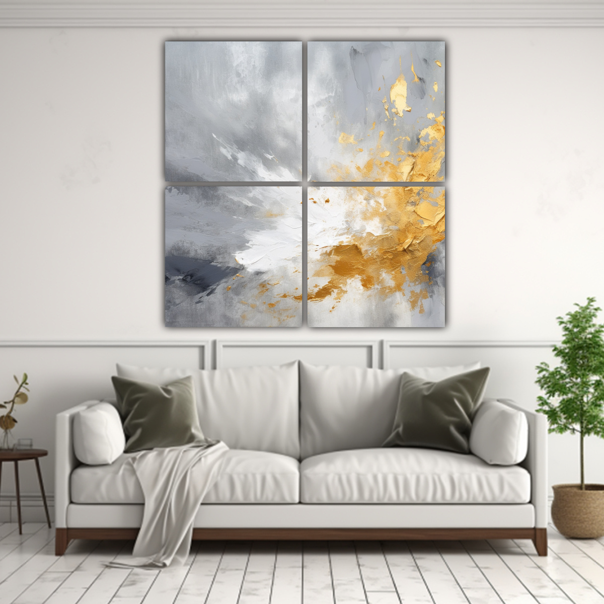 Encuentra en DecoCuadros el cuadriptico inspiración simple, una pintura abstracta atmosférica con desgastes dorados y gi Colores: plateado, coral, azul marino grisaceo, gris, beige y chocolate Diseños exclusivos y entregas rápidas y gratuitas en Santiago